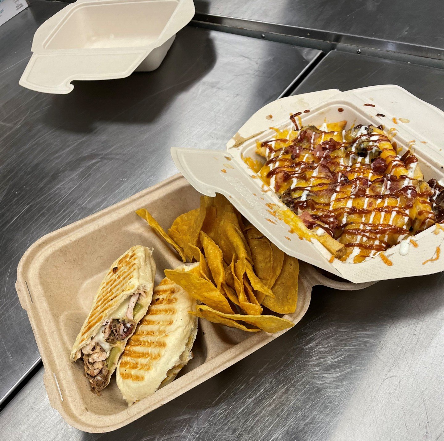 regular or sweet potato topped with brisket, cheese, bacon, ranch and bbq sauce